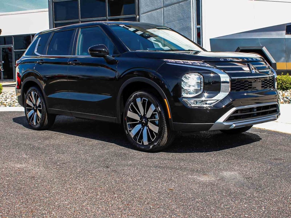 Labrador Black Pearl 2025 Mitsubishi Outlander SE 4WD CVT 2.5L I4 DOHC 16V LEV3-ULEV50 181hp BLUE TOOTH, NAVIGATION, PANORAMIC SUNROOF, Forward Collision Mitigation with pedestrian detection, Driver Attention Alert, Blind Spot Warning w/ Lane Change Assist, Rear Cross Traffic Alert, Rear Automatic Emergency Braking, Lane Departure Warning, Front & rear parking sensors, Outlander SE, 4D Sport Utility, 2.5L I4 DOHC 16V LEV3-ULEV50 181hp, CVT, 4WD, Labrador Black Pearl, Black w/Synthetic Leather Seating Surfaces, 12.3" Digital Driver Display, 3rd row seats: split-bench, 4-Wheel Disc Brakes, 8 Speakers, ABS brakes, Adaptive Cruise Control, AM/FM radio: SiriusXM, Android Auto & Apple CarPlay, Auto-dimming Rear-View mirror, Automatic temperature control, Brake assist, Dual front impact airbags, Dual front side impact airbags, Dynamic Sound Yamaha Ultimate, Electronic Stability Control, Exterior Parking Camera Rear, Four wheel independent suspension, Front dual zone A/C, Front fog lights, Fully automatic headlights, Garage door transmitter: HomeLink, Heated door mirrors, Heated Front Bucket Seats, Knee airbag, Leather steering wheel, Low tire pressure warning, Occupant sensing airbag, Overhead airbag, Power door mirrors, Power driver seat, Power Liftgate, Power Panoramic Sunroof, Radio: AM/FM 12.3" Navigation w/Smartphone-Link, Rear side impact airbag, Rear window defroster, Reclining 3rd row seat, Remote keyless entry, SE Tech Package, Security system, Split folding rear seat, Steering wheel mounted audio controls, Synthetic Leather Seating Surfaces, Telescoping steering wheel, Tilt steering wheel, Traction control, Turn signal indicator mirrors, Welcome Package, Wheels: 20" Two-Tone Alloy.