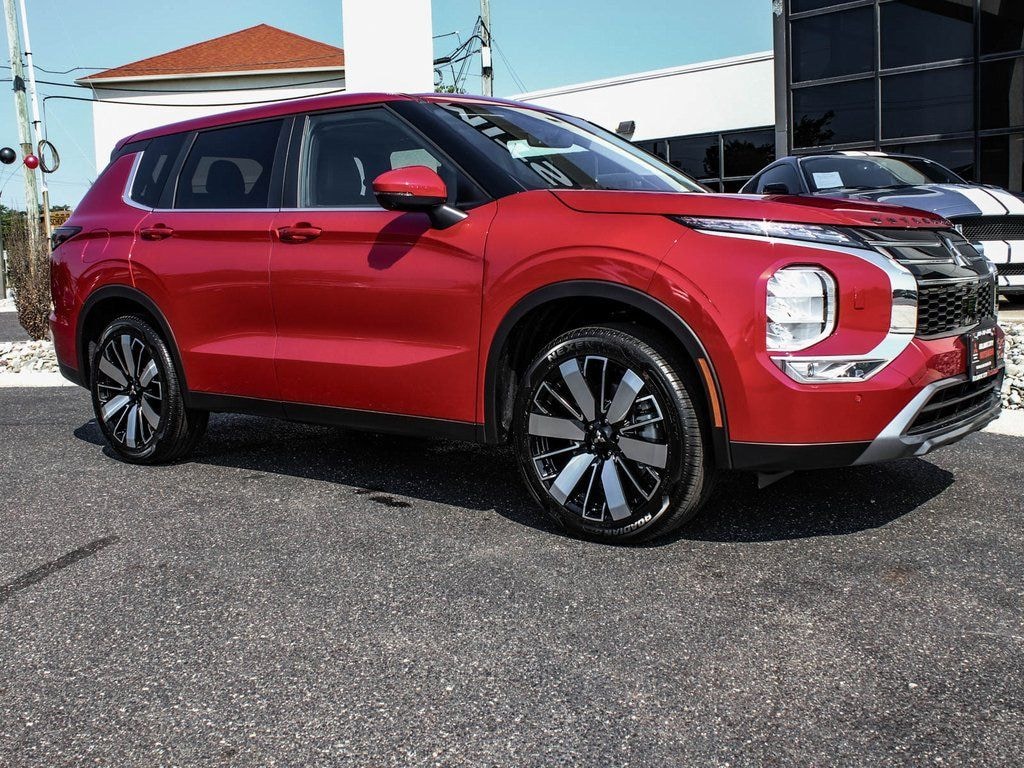 Red Diamond 2025 Mitsubishi Outlander SE 4WD CVT 2.5L I4 DOHC 16V LEV3-ULEV50 181hp BLUE TOOTH, NAVIGATION, PANORAMIC SUNROOF, 12 Speakers, Outlander SE, 4D Sport Utility, 2.5L I4 DOHC 16V LEV3-ULEV50 181hp, CVT, 4WD, Red Diamond, Black w/Synthetic Leather Seating Surfaces, 12.3" Digital Driver Display, 3rd row seats: split-bench, 4-Wheel Disc Brakes, ABS brakes, Accessory Door Ground Illumination, Adaptive Cruise Control, AM/FM radio: SiriusXM, Android Auto & Apple CarPlay, Auto High-beam Headlights, Auto-dimming Rear-View mirror, Automatic temperature control, Brake assist, Dual front impact airbags, Dual front side impact airbags, Dynamic Sound Yamaha Ultimate, Electronic Stability Control, Exterior Parking Camera Rear, Four wheel independent suspension, Front dual zone A/C, Front fog lights, Fully automatic headlights, Garage door transmitter: HomeLink, Headlight cleaning, Heated door mirrors, Heated Front Bucket Seats, Illuminated entry, Knee airbag, Leather steering wheel, Low tire pressure warning, Navigation System, Occupant sensing airbag, Overhead airbag, Power door mirrors, Power driver seat, Power Liftgate, Power Panoramic Sunroof, Radio: AM/FM 12.3" Navigation w/Smartphone-Link, Rear side impact airbag, Rear window defroster, Reclining 3rd row seat, Remote keyless entry, SE Tech Package, Security system, Steering wheel mounted audio controls, Synthetic Leather Seating Surfaces, Telescoping steering wheel, Tilt steering wheel, Traction control, Turn signal indicator mirrors, Welcome Package, Wheels: 20" Two-Tone Alloy.