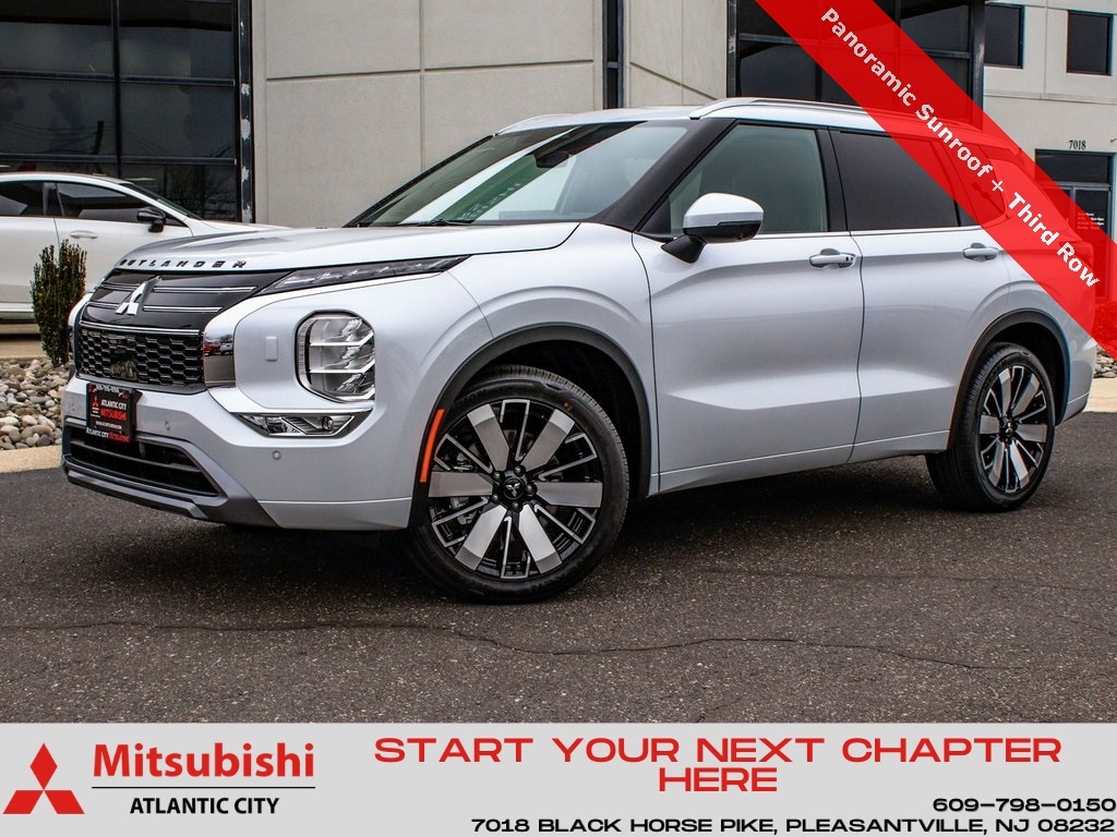 White Diamond 2026 Mitsubishi Outlander SEL 4WD CVT 1.5L I4 Turbocharged DOHC 16V LEV3-SULEV30 174hp BLUE TOOTH, NAVIGATION, ALLOY WHEELS, PANORAMIC SUNROOF, LEATHER, Outlander SEL, 4D Sport Utility, 1.5L I4 Turbocharged DOHC 16V LEV3-SULEV30 174hp, CVT, 4WD, White Diamond, Black w/Leather Appointed Seating Surfaces, 3rd row seats: split-bench, 4-Wheel Disc Brakes, ABS brakes, Adaptive Cruise Control, AM/FM radio: SiriusXM, Android Auto & Apple CarPlay, Auto High-beam Headlights, Automatic temperature control, Brake assist, Dual front impact airbags, Dual front side impact airbags, Electronic Stability Control, Exterior Parking Camera Rear, Four wheel independent suspension, Front dual zone A/C, Front fog lights, Fully automatic headlights, Heated door mirrors, Heated front seats, Heated rear seats, Heated steering wheel, Illuminated entry, Knee airbag, Leather Appointed Seating Surfaces, Leather Shift Knob, Leather steering wheel, Low tire pressure warning, Memory seat, Navigation System, Occupant sensing airbag, Overhead airbag, Power door mirrors, Power driver seat, Power Liftgate, Power passenger seat, Power sunroof: Panoramic, Rear air conditioning, Rear side impact airbag, Rear window defroster, Reclining 3rd row seat, Remote keyless entry, Security system, Telescoping steering wheel, Tilt steering wheel, Traction control, Turn signal indicator mirrors, Welcome Package, Wheels: 20" Two-Tone Alloy. Price includes: $500 - Military Program. Exp. 03/31/2026