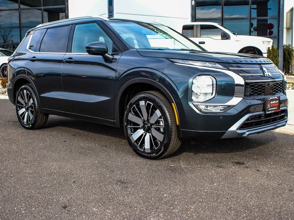 Gray 2026 Mitsubishi Outlander SEL 4WD CVT 1.5L I4 Turbocharged DOHC 16V LEV3-SULEV30 174hp BLUE TOOTH, NAVIGATION, ALLOY WHEELS, PANORAMIC SUNROOF, LEATHER, Outlander SEL, 4D Sport Utility, 1.5L I4 Turbocharged DOHC 16V LEV3-SULEV30 174hp, CVT, 4WD, Gray, Black Leather, 3rd row seats: split-bench, 4-Wheel Disc Brakes, 8 Speakers, ABS brakes, Adaptive Cruise Control, AM/FM radio: SiriusXM, Android Auto & Apple CarPlay, Auto High-beam Headlights, Automatic temperature control, Brake assist, Dual front impact airbags, Dual front side impact airbags, Electronic Stability Control, Exterior Parking Camera Rear, Four wheel independent suspension, Front dual zone A/C, Front fog lights, Fully automatic headlights, Heated door mirrors, Heated front seats, Heated rear seats, Heated steering wheel, Illuminated entry, Knee airbag, Leather Appointed Seating Surfaces, Leather Shift Knob, Leather steering wheel, Low tire pressure warning, Memory seat, Navigation System, Occupant sensing airbag, Overhead airbag, Panic alarm, Power door mirrors, Power driver seat, Power Liftgate, Power passenger seat, Power sunroof: Panoramic, Rear air conditioning, Rear side impact airbag, Rear window defroster, Reclining 3rd row seat, Remote keyless entry, Security system, Telescoping steering wheel, Tilt steering wheel, Traction control, Turn signal indicator mirrors, Wheels: 20" Two-Tone Alloy. Price includes: $500 - Military Program. Exp. 03/31/2026