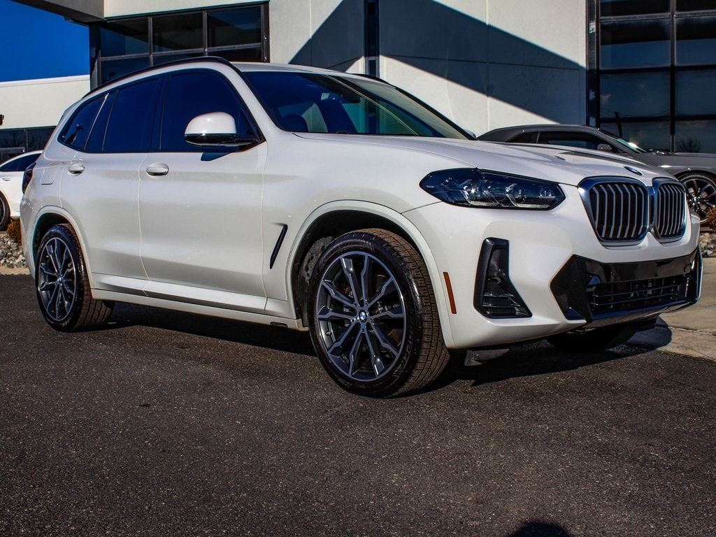 2022 BMW X3 xDrive30i BLUE TOOTH, FULLY RECONDITIONED, NAVIGATION, ALLOY WHEELS, PANORAMIC MOONROOF, X3 xDrive30i, 4D Sport Utility, 2.0L I4 TwinPower Turbo, 8-Speed Automatic Sport, AWD, Alpine White, Tacora Red w/Perforated SensaTec Upholstery, 12 Speakers, 4-Wheel Disc Brakes, ABS brakes, Aerodynamic Kit, AM/FM Radio, Apple CarPlay & Android Auto Compatibility, Auto High-beam Headlights, Auto-dimming door mirrors, Auto-dimming Rear-View mirror, Automatic temperature control, Brake assist, Comfort Access Keyless Entry, Connected Package Pro, ConnectedDrive Services, Cruise control, Dual front impact airbags, Dual front side impact airbags, Electronic Stability Control, Enhanced Bluetooth, Exterior Parking Camera Rear, Four wheel independent suspension, Front dual zone A/C, Fully automatic headlights, Garage door transmitter, Genuine wood dashboard insert, Genuine wood door panel insert, Gesture Control, Heated door mirrors, Heated Front Seats, Heated Steering Wheel, Hi-Fi Sound System, Illuminated entry, Knee airbag, Live Cockpit Pro w/Navigation, Low tire pressure warning, Lumbar Support, M Sport Package (337), M Sport Package 2, M Steering Wheel, Memory seat, Navigation System, Occupant sensing airbag, Overhead airbag, Panic alarm, Panoramic Moonroof, Perforated SensaTec Upholstery, Power door mirrors, Power Front Seats, Power Liftgate, Premium Package 2, Rear air conditioning, Rear window defroster, Remote Engine Start, Remote keyless entry, Roof Rails in High-Gloss Shadowline, Security system, Shadowline Exterior Trim, SiriusXM w/360L, Smoke Grey Aluminum Rhombicle Trim, Speed-sensing steering, Sport Seats, Sport steering wheel, Telescoping steering wheel, Tilt steering wheel, Traction control, Turn signal indicator mirrors, Wheels: 20" x 8.0" Fr & 20" x 9.5" Rr M Dbl Spoke, WiFi Hotspot. 21/28 City/Highway MPG