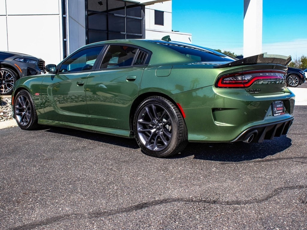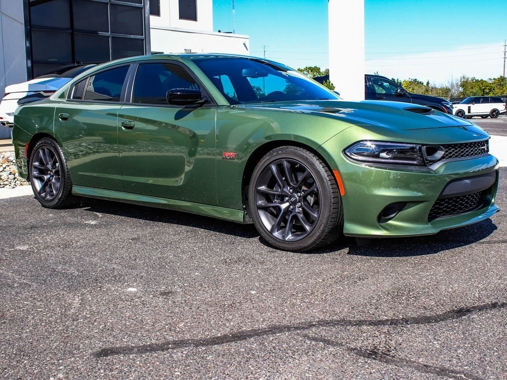 2023 Dodge Charger R/T Scat Pack Recent Arrival! BLUE TOOTH, FULLY RECONDITIONED, NAVIGATION, ALLOY WHEELS, SUNROOF/MOONROOF, LEATHER, Charger R/T Scat Pack, 4D Sedan, SRT HEMI 6.4L V8 MDS, 8-Speed Automatic, RWD, F8 Green, Black w/Cloth Performance Seats w/Heat or Daytona Logo Nappa/Alcantara Seat or Nappa/Alcantara Seats w/Logo or Scat Pack Logo Nappa/Alcantara Seat or Super Bee Nappa/Alcantara Seats or Nappa Alcantara Seat Trim w/Green Stitch, Plus Group, 4-Wheel Disc Brakes, 4G LTE Wi-Fi Hot Spot, 6 Speakers, 8.4" Touchscreen Display, ABS brakes, AM/FM radio: SiriusXM, Anti-whiplash front head restraints, Apple CarPlay/Android Auto, Auto Adjust In Reverse Exterior Mirrors, Auto-Dimming Exterior Driver Mirror, Auto-dimming Rear-View mirror, Automatic temperature control, Black-Edged Premium Floormats, Blind Spot & Cross Path Detection, Blind Spot Memory/Power/Heat Mirror, Brake assist, Cruise control, Driver & Passenger Lower LED Lamps, Dual front impact airbags, Dual front side impact airbags, Electronic Stability Control, Exterior Mirrors Courtesy Lamps, Exterior Mirrors w/Heating Element, Four wheel independent suspension, Front dual zone A/C, Front fog lights, Front Overhead LED Lighting, Fully automatic headlights, Garage door transmitter: HomeLink, GPS Navigation, Heated Front Seats, Heated steering wheel, Illuminated entry, Integrated Center Stack Radio, Integrated Voice Command w/Bluetooth, Knee airbag, Leather Shift Knob, Low tire pressure warning, Media Hub (2 USB, AUX), Occupant sensing airbag, Overhead airbag, Panic alarm, ParkView Rear Back-Up Camera, Power 2-Way Driver Lumbar Adjust, Power 2-Way Passenger Lumbar Adjust, Power door mirrors, Power Front Driver/Passenger Seats, Power Tilt/Telescope Steering Column, Premium-Stitched Dash Panel, Quick Order Package 21W Scat Pack, Radio: Uconnect 4C w/8.4" Display, Radio/Driver Seat/Mirrors Memory, Rear window defroster, Remote keyless entry, Scat Pack Logo Nappa/Alcantara Seat, Security system, Sport steering wheel, Traction control, Ventilated Front Seats, Wheels: 20" x 9" Lo Gloss Granite Crystal.