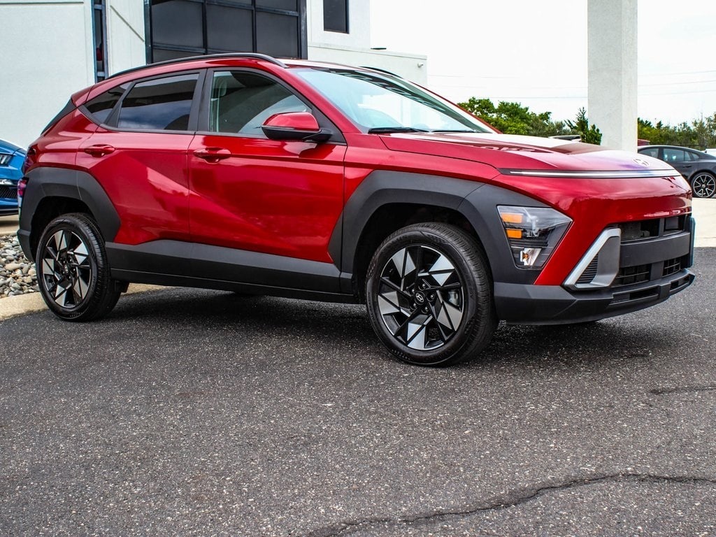 2024 Hyundai Kona SEL ONE OWNER, BLUE TOOTH, FULLY RECONDITIONED, NAVIGATION, ALLOY WHEELS, Kona SEL, 4D Sport Utility, 2.0L I4 DOHC 16V, CVT, AWD, Ultimate Red Metallic, Black w/Cloth Seat Trim, 4-Wheel Disc Brakes, 6 Speakers, ABS brakes, Apple CarPlay & Android Auto, Auto High-beam Headlights, Automatic temperature control, Brake assist, Cruise control, Dual front impact airbags, Dual front side impact airbags, Electronic Stability Control, Exterior Parking Camera Rear, Four wheel independent suspension, Front dual zone A/C, Fully automatic headlights, Heated door mirrors, Illuminated entry, Leather Shift Knob, Leather steering wheel, Low tire pressure warning, Navigation System, Occupant sensing airbag, Option Group 01, Overhead airbag, Power door mirrors, Power driver seat, Radio: AM/FM/HD Radio/SiriusXM Audio System, Rear window defroster, Remote keyless entry, Security system, Speed-sensing steering, Telescoping steering wheel, Tilt steering wheel, Traction control, Turn signal indicator mirrors, Wheels: 18" x 7.0J Glossy Black Alloy. 27/29 City/Highway MPG