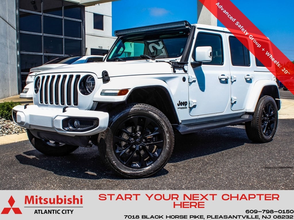 2021 Jeep Wrangler Unlimited Sahara High Altitude Recent Arrival! CLEAN CARFAX, BLUE TOOTH, FULLY RECONDITIONED, NAVIGATION, ALLOY WHEELS, LEATHER, Wrangler Unlimited Sahara High Altitude, 4D Sport Utility, 3.6L V6 24V VVT, 8-Speed Automatic, 4WD, Bright White Clearcoat, Black w/Cloth Low-Back Bucket Seats or Leather Trimmed Bucket Seats or Leather Trimmed Bucket Seats (KL) or Leather Trimmed Seats w/Sahara Logo, Advanced Safety Group, Apple CarPlay/Android Auto, 3.73 Rear Axle Ratio, 4-Wheel Disc Brakes, 4G LTE Wi-Fi Hot Spot, 8 Speakers, 8.4" Radio & Premium Audio Group, 8.4" Touchscreen Display, ABS brakes, Adaptive Cruise Control w/Stop, Advanced Brake Assist, Alpine Premium Audio System, Anti-Lock 4-Wheel FNC Disc Brakes, Auto High Beam Headlamp Control, Auto-Dimming Rear-View Mirror, Automatic temperature control, Blind Spot & Cross Path Detection, Body Color 3-Piece Hard Top, Body Color Door Handles, Body Color Exterior Mirrors, Body Color Front Bumper, Body Color Fuel Filler Door, Body Color Grille w/Gloss Black Rings, Body Color Rear Bumper w/Step Pads, Caramel Interior Accents, Dana M210 Wide HD Tube Front Axle, Dana M220 Wide Rear Axle, Daytime Running Lamps LED Accents, Dual front impact airbags, Dual front side impact airbags, Electronic Stability Control, Emergency/Assistance Call, Front dual zone A/C, Front LED Fog Lamps, Full Body Color Fender Flares, Full Speed Forward Collision Warning Plus, Fully automatic headlights, Garage door transmitter, GPS Antenna Input, GPS Navigation, HD Radio, Heated door mirrors, High Altitude Package, Illuminated entry, Integrated Voice Command w/Bluetooth, Leather steering wheel, Leather Trimmed Bucket Seats (KL), Leather Wrapped Park Brake Handle, Leather Wrapped Shift Knob, LED Lighting Group, LED Premium Reflector Headlamps, LED Taillamps, Low tire pressure warning, Occupant sensing airbag, Off-Road Info Pages, ParkSense Rear Park Assist System, ParkView Rear Back-Up Camera, Power door mirrors, Premium Dark Exterior Accents, Quick Order Package 25N High Altitude, Radio: Uconnect 4C Nav w/8.4" Display, Remote Proximity Keyless Entry, Safety Group, Security system, SiriusXM Traffic Plus, SiriusXM Travel Link, Sport Suspension, Summit Badging, Telescoping steering wheel, Tilt steering wheel, Traction control, USB Host Flip, Wheels: 20" x 8" Fully Painted Aluminum, Wrapped I/P Bezel w/Caramel Stitch.