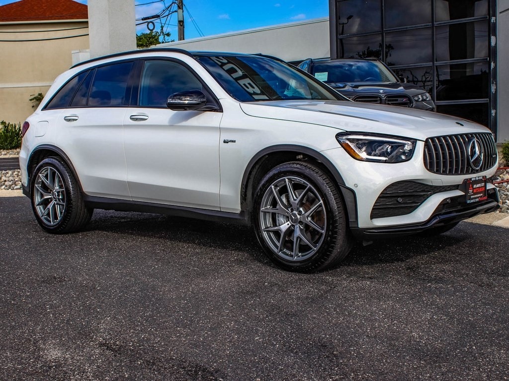 2022 Mercedes-Benz GLC 43 AMG® 4MATIC® BLUE TOOTH, FULLY RECONDITIONED, NAVIGATION, ALLOY WHEELS, PANORAMIC SUNROOF, LEATHER, GLC 43 AMG® 4MATIC®, 4D Sport Utility, V6, 9-Speed Automatic, 4MATIC®, Polar White, Cranberry Red/Black w/Leather Upholstery, 10.25" Center Touchscreen Display w/Touchpad, 4-Way Lumbar Support, 4-Wheel Disc Brakes, 6 Speakers, ABS brakes, Adaptive suspension, AMG® Night Package, AMG® Performance Exhaust System, Apple CarPlay®/Android Auto®, Auto High-beam Headlights, Auto tilt-away steering wheel, Auto-dimming door mirrors, Auto-dimming Rear-View mirror, Auto-leveling suspension, Automatic temperature control, Brake assist, Child-Seat-Sensing Airbag, Cruise control, Dual front impact airbags, Dual front side impact airbags, Electronic Stability Control, Four wheel independent suspension, Front dual zone A/C, Fully automatic headlights, Garage door transmitter: HomeLink, Genuine wood dashboard insert, Head-Up Display w/AMG® Specific Content, Heated door mirrors, Heated Steering Wheel, Illuminated entry, Knee airbag, Leather steering wheel, Leather Upholstery, LED Intelligent Light System, Live Traffic, Low tire pressure warning, Memory seat, Mercedes-Benz Navigation, Multimedia Package Lite, Navigation System, Occupant sensing airbag, Overhead airbag, Panorama Roof, Power adjustable front head restraints, Power door mirrors, Power Heated Front Bucket Seats, Power Liftgate, Radio: AM/FM Audio System, Rear window defroster, Remote keyless entry, Security system, SiriusXM Satellite Radio, Smartphone Integration, Speed Limit Assist, Speed-sensing steering, Sport steering wheel, Steering wheel memory, Surround View Camera, Telescoping steering wheel, Traction control, Turn signal indicator mirrors, Wheels: 20" AMG® Y 5-Spoke. Odometer is 14026 miles below market average!