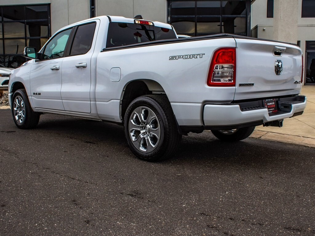 2022 Ram 1500 Big Horn/Lone Star ONE OWNER, BLUE TOOTH, FULLY RECONDITIONED, NAVIGATION, ALLOY WHEELS, 1500 Big Horn/Lone Star, 4D Quad Cab, 3.6L V6 24V VVT, 8-Speed Automatic, 4WD, Bright White Clearcoat, Black w/Deluxe Cloth Bucket Seats, 3 Rear Seat Head Restraints, 4 Way Front Headrests, 4-Wheel Disc Brakes, 4G LTE Wi-Fi Hot Spot, 6 Speakers, 8.4" Touchscreen Display, ABS brakes, Air Conditioning, All Plant-Installed Decals, Alloy wheels, Apple CarPlay, Auto-Dimming Exterior Driver Mirror, Auto-Dimming Rear-View Mirror, Big Horn Badge, Big Horn Level 1 Equipment Group, Black Interior Accents, Bluetooth Handsfree Phone & Audio, Body Color Front Bumper, Body Color Premium Power Mirrors, Body Color Rear Bumper w/Step Pads, Brake assist, Bridgestone Brand Tires, Cluster 7.0" TFT Color Display, Connectivity - US/Canada, Convex Wide-Angle Mirror Insert, Cruise control, Deluxe Cloth Bucket Seats, Driver door bin, Dual front impact airbags, Dual front side impact airbags, Electronic Stability Control, Emergency communication system: SiriusXM Guardian, Exterior Mirrors Courtesy Lamps, Exterior Mirrors w/Heating Element, Exterior Mirrors w/Supplemental Signals, Front fog lights, Front wheel independent suspension, Full Length Floor Console, Fully automatic headlights, Global Telematics Box Module (TBM), Glove Box Lamp, Google Android Auto, GPS Antenna Input, GPS Navigation, Grille Surround 1 Body Color Texture 2 Black, Illuminated entry, Integrated Center Stack Radio, Integrated Voice Command w/Bluetooth, Leather steering wheel, Low tire pressure warning, Occupant sensing airbag, Overhead airbag, Panic alarm, ParkView Rear Back-Up Camera, Power 2-Way Driver Lumbar Adjust, Power 8-Way Driver Seat, Power Adjustable Pedals, Power-Folding Mirrors, Quick Order Package 23Z Big Horn, Radio: Uconnect 5 W w/8.4" Display, Rear 60/40 Folding Seat, Rear anti-roll bar, Rear Dome w/On/Off Switch Lamp, Rear Power Sliding Window, Rear seat center armrest, Rear Window Defroster, Remote keyless entry, SiriusXM Radio Service, SiriusXM Satellite Radio, Sport Appearance Package, Sport Decal, Sun Visors w/Illuminated Vanity Mirrors, Telescoping steering wheel, Tilt steering wheel, Traction control, Universal Garage Door Opener, USB Host Flip, Voltmeter, Wheels: 20" x 9" Aluminum Chrome Clad. Odometer is 4108 miles below market average!