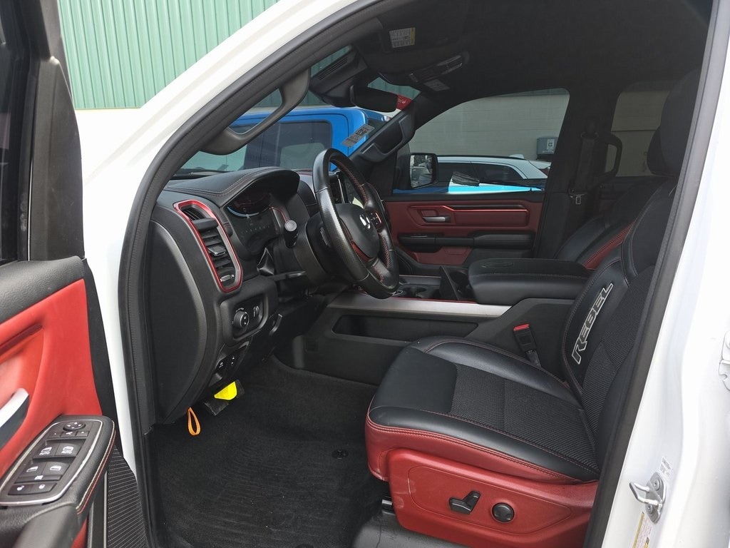 2023 Ram 1500 Rebel Recent Arrival! BLUE TOOTH, FULLY RECONDITIONED, NAVIGATION, ALLOY WHEELS, Quick Order Package 25W, 1500 Rebel, 4D Crew Cab, HEMI 5.7L V8 Multi Displacement VVT eTorque, 8-Speed Automatic, 4WD, Bright White Clearcoat, Red/Black w/Cloth/Vinyl Low Back Bucket Seats, 12" Touchscreen Display, 2nd Row In Floor Storage Bins, 4 Way Front Headrests, 4-Wheel Disc Brakes, 4G LTE Wi-Fi Hot Spot, 9 Amplified Speakers w/Subwoofer, ABS brakes, Apple CarPlay/Android Auto, Auto-Dimming Exterior Driver Mirror, Auto-dimming Rear-View mirror, Automatic temperature control, Bed Utility Group, Black Premium Power Mirrors, Brake assist, Class IV Receiver Hitch, Cloth/Vinyl Low Back Bucket Seats, Connected Travel & Traffic Services, Connectivity - US/Canada, Convex Wide-Angle Exterior Mirror Insert, Cruise control, Disassociated Touchscreen Display, Driver Seat Memory, Dual front impact airbags, Dual front side impact airbags, Electronic Stability Control, Exterior Mirrors Courtesy Lamps, Exterior Mirrors w/Heating Element, Exterior Mirrors w/Supplemental Signals, Foam Bottle Insert (Door Trim Panel), Front Center Armrest w/Storage, Front dual zone A/C, Front fog lights, Front wheel independent suspension, Full Length Upgraded Floor Console, Fully automatic headlights, Global Telematics Box Module (TBM), GPS Antenna Input, HD Radio, Heated Front Seats, Heated Steering Wheel, Integrated Center Stack Radio, Integrated Voice Command w/Bluetooth, Leather steering wheel, Low tire pressure warning, MOPAR 4 Adjustable Cargo Tie-Down Hooks, Mopar Black Tubular Side Steps, MOPAR Spray In Bedliner, Navigation System, Occupant sensing airbag, Off-Road Information Pages, Outside temperature display, Overhead airbag, Panic alarm, ParkView Rear Back-Up Camera, Passenger door bin, Pick-Up Box Lighting, Power 2-Way Driver Lumbar Adjust, Power 8-Way Driver Seat, Power Adjustable Pedals, Power-Folding Mirrors, Radio: Uconnect 5 Nav w/12.0" Display, Rear Dome w/On/Off Switch Lamp, Rear Window Defroster, Rebel Level 1 Equipment Group, Remote keyless entry, SiriusXM Radio Service, SiriusXM w/360L, Split folding rear seat, Telescoping steering wheel, Tilt steering wheel, Traction control, Universal Garage Door Opener, USB Host Flip, Variably intermittent wipers, Voltmeter, Wheels: 18" x 8.0" Painted Mid-Gloss Black.
