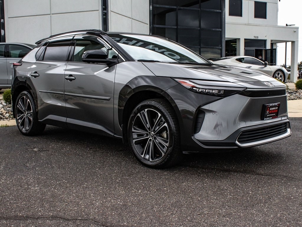 2023 Toyota bZ4X Limited CLEAN CARFAX, ONE OWNER, BLUE TOOTH, FULLY RECONDITIONED, NAVIGATION, ALLOY WHEELS, Panoramic Fixed Glass Roof w/Power Sunshade, bZ4X Limited, 4D Sport Utility, Electric Motor, Single-Speed Automatic, AWD, Heavy Metal w/Black Roof, Black w/SofTex Seat Trim, 4-Wheel Disc Brakes, ABS brakes, Adaptive Cruise Control, AM/FM radio: SiriusXM, Apple CarPlay/Android Auto, Auto High-beam Headlights, Auto-dimming Rear-View mirror, Automatic temperature control, Brake assist, Dual front impact airbags, Dual front side impact airbags, Electronic Stability Control, Four wheel independent suspension, Front dual zone A/C, Front Radiant Foot & Leg Heater, Fully automatic headlights, Garage door transmitter: HomeLink, Heated & Ventilated Front Seats, Heated door mirrors, Heated Rear Seats, Heated steering wheel, Illuminated entry, Knee airbag, Leather steering wheel, Low tire pressure warning, Navigation system: Drive Connect (3 year trial) includes Cloud Navigation with real time traffic and Google POI, Occupant sensing airbag, Overhead airbag, Paint Protection Film (TMS), Power door mirrors, Power driver seat, Power Liftgate, Radio: JBL Premium Audio w/9 Speakers, Rear window defroster, Remote keyless entry, Security system, SofTex Seat Trim, Split Roof Rear Spoiler, Telescoping steering wheel, Tilt steering wheel, Traction control, Turn signal indicator mirrors, Weather Package, Wheels: 20" Multi-Spoke Machine-Finished Alloy. 112/92 City/Highway MPG Odometer is 3503 miles below market average!