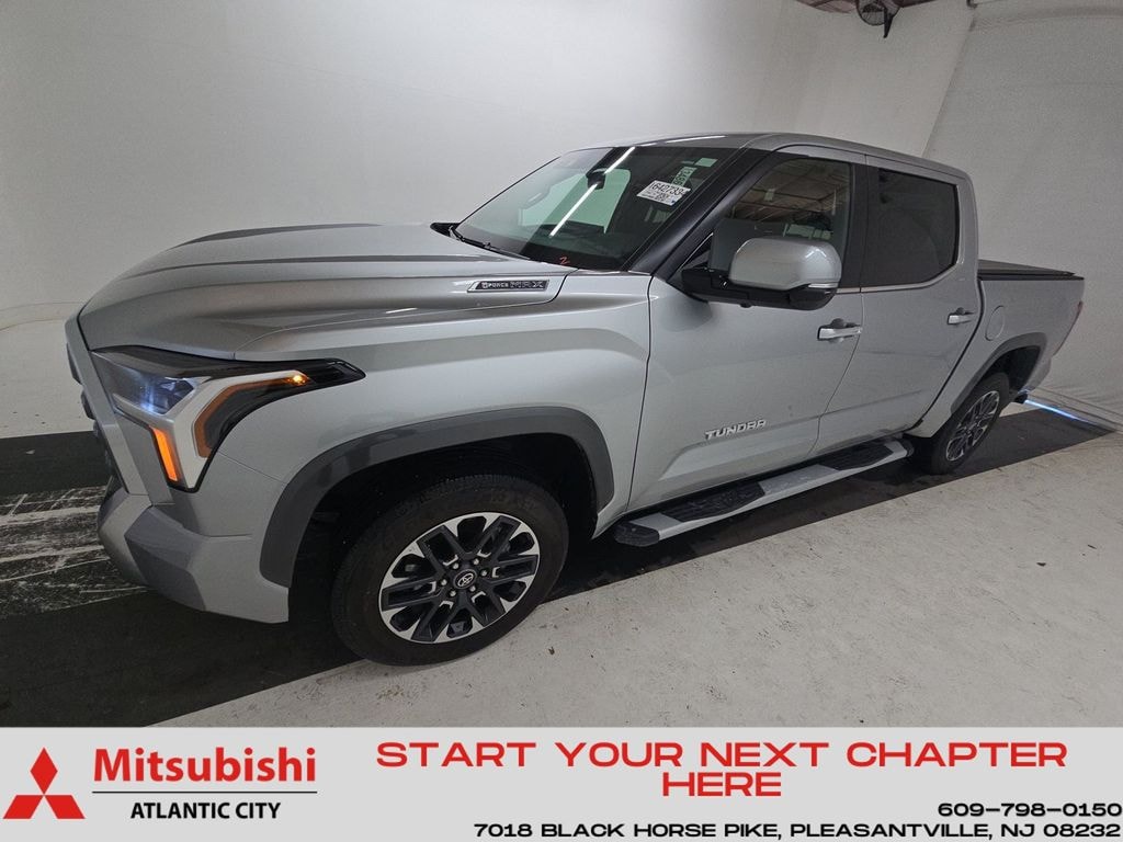 2025 Toyota Tundra Hybrid Limited Recent Arrival! CLEAN CARFAX, ONE OWNER, BLUE TOOTH, FULLY RECONDITIONED, NAVIGATION, ALLOY WHEELS, Tundra Hybrid Limited, 4D CrewMax, 3.4L V6, 10-Speed Automatic, 4WD, Celestial Silver Metallic, Black w/SofTex Seat Trim, 20" x 8" Alloy Wheels, 4-Wheel Disc Brakes, 400W/120V AC Rear Seat & Bed Power Supply, 9 Speakers, ABS brakes, Adaptive Cruise Control, AM/FM radio: SiriusXM, Apple CarPlay/Android Auto, Auto High-beam Headlights, Auto-dimming door mirrors, Auto-dimming Rear-View mirror, Automatic temperature control, Bed Step (TMS), Brake assist, Dual front impact airbags, Dual front side impact airbags, Electronic Stability Control, Exterior Parking Camera Rear, Front dual zone A/C, Front fog lights, Front wheel independent suspension, Fully automatic headlights, Garage door transmitter: HomeLink, Heated & Ventilated Front Bucket Seats, Heated door mirrors, Heated Leather Steering Wheel, Illuminated entry, Knee airbag, Leather Shift Knob, Low tire pressure warning, Memory seat, Navigation System, Non-Skid Spray-On Bed Liner (TMS), Occupant sensing airbag, Overhead airbag, Panoramic View Back Monitor, Panoramic View Monitor Package, Power door mirrors, Power driver seat, Power Package, Power passenger seat, Qi-Compatible Wireless Smartphone Charger, Radio: Audio Plus, Rear window defroster, Remote keyless entry, Security system, SofTex Seat Trim, Speed-sensing steering, Telescoping steering wheel, Tilt steering wheel, Traction control, Turn signal indicator mirrors.