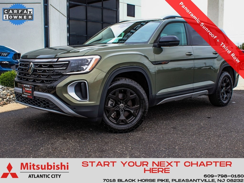 2024 Volkswagen Atlas 2.0T Peak Edition SEL Recent Arrival! CLEAN CARFAX, ONE OWNER, BLUE TOOTH, FULLY RECONDITIONED, NAVIGATION, ALLOY WHEELS, PANORAMIC SUNROOF, Predictive Adaptive Cruise Control, Atlas 2.0T Peak Edition SEL, 4D Sport Utility, 2.0L TSI, 8-Speed Automatic with Tiptronic, AWD, Avocado Green Pearl, Titan Black w/Orange Stitching w/Perforated V-Tex Leatherette Seating Surfaces, Heated/Actively Ventilated Front Bucket Seats, 3rd row seats: split-bench, 4-Wheel Disc Brakes, 6 Speakers, ABS brakes, AM/FM radio: SiriusXM with 360L, Auto High-beam Headlights, Auto-Dimming Rear-View Mirror, Automatic temperature control, Brake assist, Dual front impact airbags, Dual front side impact airbags, Electronic Stability Control, Exterior Parking Camera Rear, Four wheel independent suspension, Front dual zone A/C, Front fog lights, Fully automatic headlights, Heads-Up Display, Heated door mirrors, Heated steering wheel, Illuminated entry, Low tire pressure warning, Memory seat, Navigation System, Occupant sensing airbag, Overhead airbag, Panic alarm, Perforated V-Tex Leatherette Seating Surfaces, Power door mirrors, Power driver seat, Power Liftgate, Power passenger seat, Power sunroof: Panoramic, Radio: MIB3 Discover Media w/Navigation, Rear air conditioning, Rear window defroster, Remote keyless entry, Security system, Speed-sensing steering, Standard Suspension, Telescoping steering wheel, Tilt steering wheel, Traction control, Trailer Hitch Extras, Turn signal indicator mirrors, Wheels: 18" Black Painted 5-Spoke Alloy.